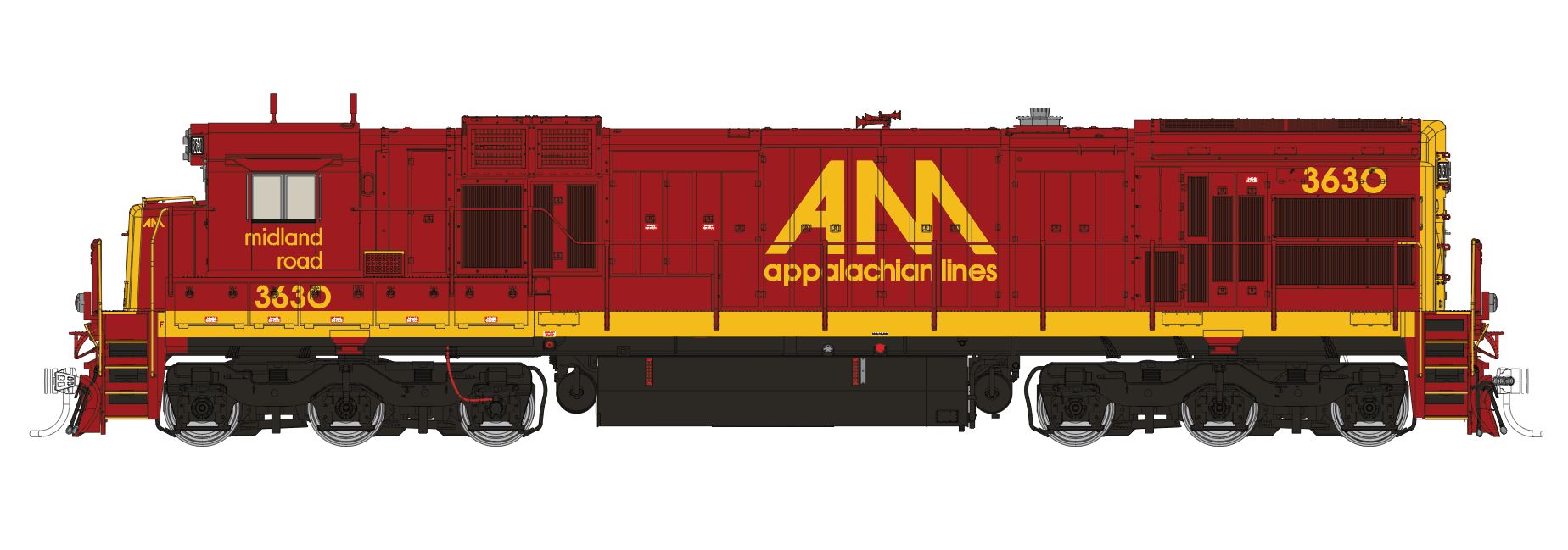 A Limited Edition Rapido Trains GE C36-7 Locomotive painted for freelance model railroad Allegheny Midland!