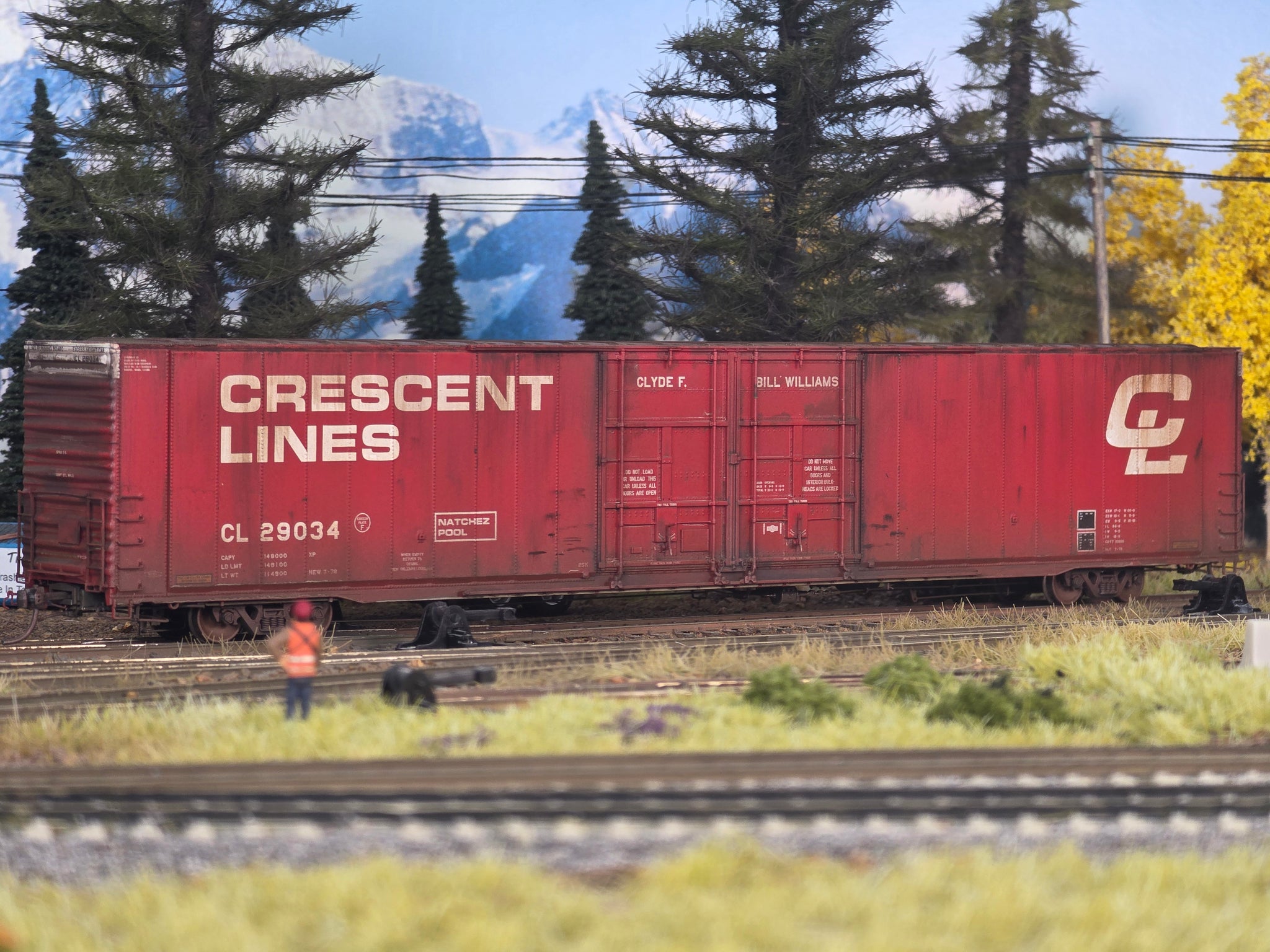A Limited Edition Tangent Scale Models GSC 86' Double Plug Door Box Car painted for freelance model railroad Crescent Lines! Road Number Variant: CL 29034 named "CLYDE F. 'BILL' WILLIAMS".